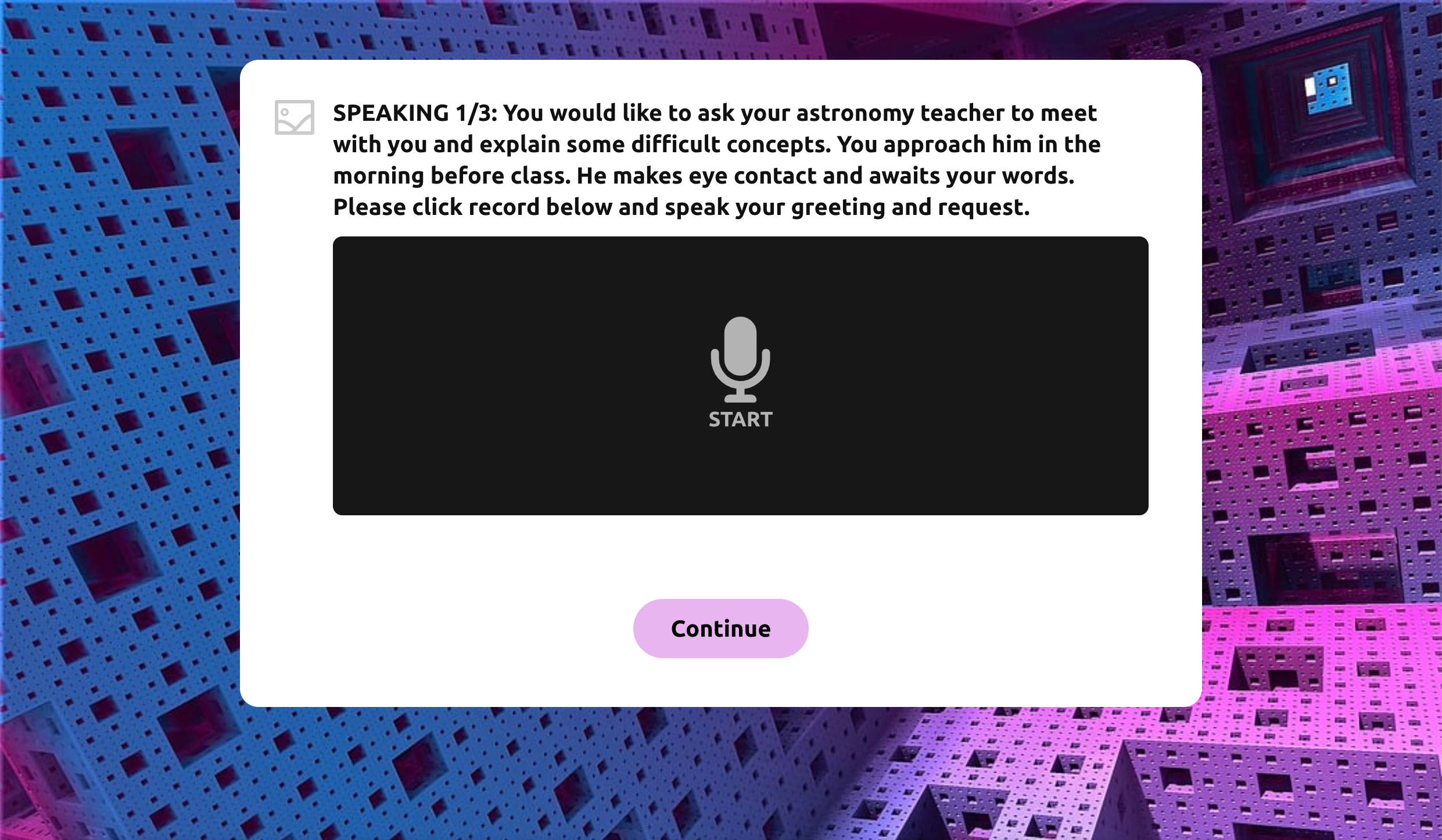 With this 20-minute test, you’ll learn how well you perform essential tasks in English under time pressure - speaking to a ticket agent at an airport, for example - even with imperfect grammar.