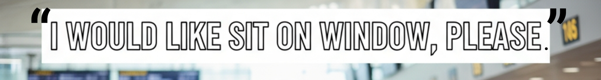 INCORRECT BUT CLEAR: “I would like sit next to window, please.”